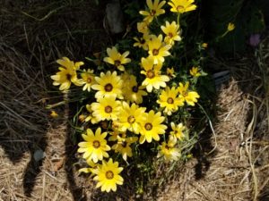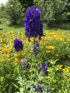 Otto's Thrill Dahlia by Martha Fenn King: Martha says, "I like growing ALL the dahlias. Actually, I love all the cut flowers!" To grow these, Martha advises, "Add compost and prepare the soil by hand digging or tilling. I usually wait for the soil to warm up to about 60 F, plant the tubers about 4 inches deep, then stake them or tie to the fence when they are sending up the stems. During the drought I had to soak the roots at least one time per week. After light frost, dig them out, dust off some soil and store in bins that have some air circulation where they will not freeze. Be sure the stems are trimmed fairly close to the root. If you wish to remember the names, mark them while in bloom and tie the name to the stem. Store the same varieties in one bin and mark the bin with description/name." She reminds us that Dahlias "add color in August - October until the frost takes them."