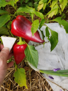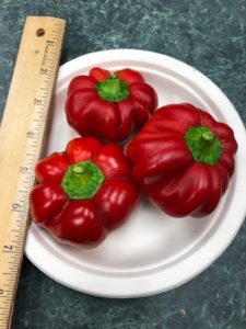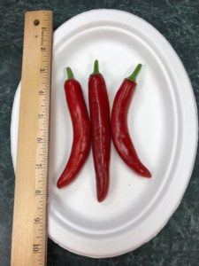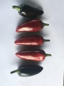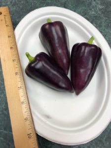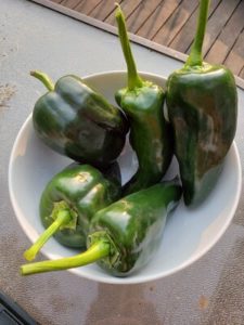 Caballero Ancho/Poblano Hot Pepper by Martha Fenn King Martha reports, "This is the first year growing this beauty. Use plenty of compost and check for pH as they like to grow at about 5.5 - 6.5. Perhaps you need to raise or lower the pH of your soil. Start the seeds in March or April and set out in the garden early June or after threat of frost. They love full sun and may need to be staked as they grew tall and bushed out. They do turn red, but this takes about 84 days. " Martha also shares how she has used this variety so far: "Dehydrated this poblano along with Jimmy Nardello. A work in progress; will let you know in the middle of the winter. We have thrown it chopped or sliced into sauces or salads. Would be more appetizing stuffed and mature when red." Martha sourced this variety from Fedco and says, "The deep and shiny green colors of this pepper make it amazingly eye appealing. "
