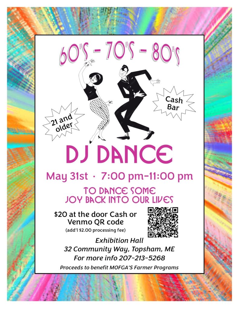 Join DJ Dance Party at the Topsham Exhibition Hall for a 60’s, 70’s, and 80’s dance party!