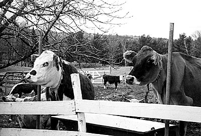 | Cows are organically raised and are content both outdoors and in at Morrill Farm. Joyce White photo. |