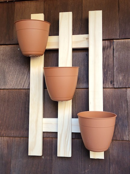 Step 4: Once you have the horizontal pieces in place, turn the project over. The plant pots will be affixed to the front.