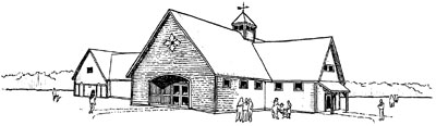 Because MOFGA operates within tight budgets and schedules, creating its new permanent home strained its resources. The Common Ground Center had to be built quickly and at a cost comparable to or less than that for “normal” commercial buildings. The building has to support many kinds of activities, so its spaces have to be flexible enough for many uses. For several hectic days each year, the building serves as the Exhibition Hall and operations base for the Common Ground Fair, but the same spaces have to serve other conferences and meetings, support a commercial kitchen suitable for catering, classes and demonstrations, house a growing library of agricultural books and pamphlets, and provide offices for MOFGA staff. The building needs to be adaptable to future needs and opportunities. And, of course, the building had to meet federal, state and local codes for safety, accessibility and health.