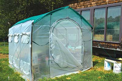 | Mort starts seedlings in this small structure next to his equipment barn. |