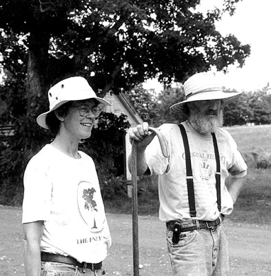 Horses are still part of Paula and Sumner’s lives. Jason, a 31-year-old gelding that once belonged to Paula’s mother; Truce, a 16-year-old Percheron/ Morgan mare; her daughter, Sophie, whose father is a Morgan; and Joe, an elderly Percheron draft horse, live in the basement of the old barn, along with the chickens (when they want to come inside). The huge loft is stuffed with the winter’s supply of hay, and the main floor is filled with straw. Many more horses inhabit Sumner’s world. In fact, a good part of the farm’s income comes from the horseshoeing business he started 10 years ago. He studied at the Eastern School of Farriery in Virginia and traveled with a couple of other farriers before going on his own. Waldo County is home to a good many “backyard” and trail riding horses. In Brooks and Belfast, horse clubs sponsor low pressure horse shows where children and teenagers compete, and even a few serious horse owners travel to compete in dressage and the like. “There are a few work horses,” Sumner says, “but they’re not much of my business. It takes a lot more work to shoe a draft horse, so I charge more. That means that the old timers with draft horses are not going to pay my fee, so they do it themselves.” His own two draft horse crosses and old Joe, whom they bought to help train them, are more pets than workers. The woodlot maintenance they were originally used for has given way to long hours spent raising livestock. (They are hoping to have a MOFGA apprentice to help with the work load this summer.)