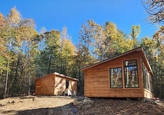 Since I decided on buying land without a house, I had to think about everything from getting water and power to how to build in unbroken forest without wrecking the place. I began with thinking about the house itself: a tiny, affordable house, one that I could live in while finishing it, thereby escaping the cycle of expensive rent (as I had sold my house) as quickly as possible. There are companies offering simple, mobile structures that can easily become homes, and I settled on an Amish builder, Backyard Buildings in Unity, Maine. These buildings are not the same as a traditional home, but they also do not cost $500,000. They are built simply and quickly, with options for adding complete electrical wiring, insulation, finished interior walls, windows, doors, and floors. I had an opportunity to be in an almost finished home just a few months after deciding on a plan, which saved me having to pay two or more years of rent while I waited for a builder to construct a house for me.